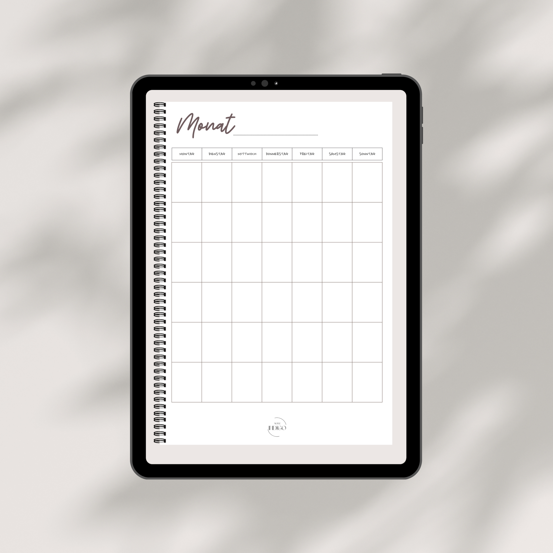 Dank des undatierten Designs kannst du den Planer jederzeit starten und beliebig oft wiederverwenden. Als digitales Produkt lässt sich die Datei ganz einfach jeden Monat erneut in GoodNotes oder einer anderen Notiz App importieren ideal für eine langfristige Nutzung ohne zusätzlichen Aufwand.